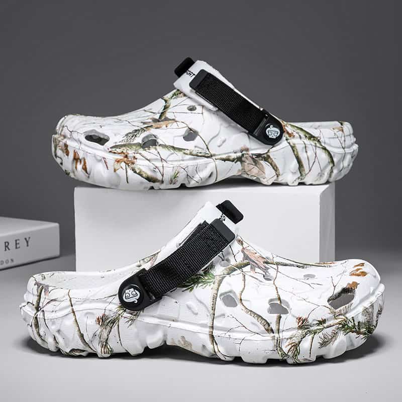 Embrace the blend of outdoor utility and fashion with these Classic Men’s Tree Camouflage Clogs – your essential footwear for quality, comfort, and style.
